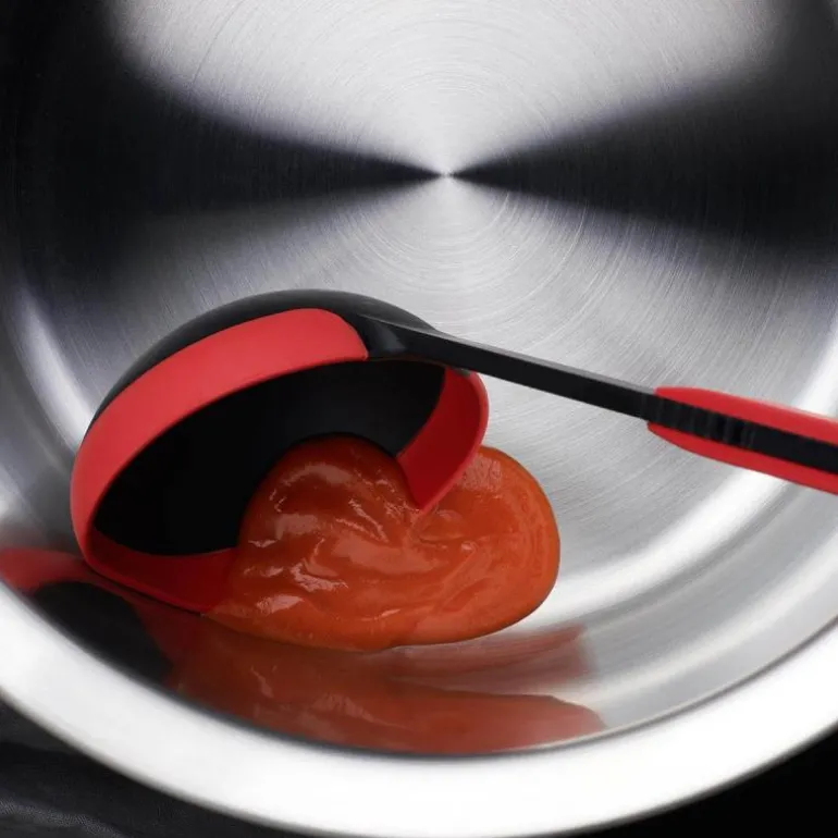 Denne svarte og røde suppeøsen fra Woll’s Cook It-serie kombinerer funksjonalitet og stil. Den matsikre silikonkanten beskytter kokekarene dine samtidig som du kan servere suppe og sauser uten å miste noe på veien. Øsen har en forsterket kjerne av glassfiber for økt holdbarhet, og den tåler temperaturer opptil 220 grader, noe som gjør den perfekt for bruk i høye temperaturer. Med sitt ergonomiske design er den komfortabel å holde, selv under langvarig bruk.