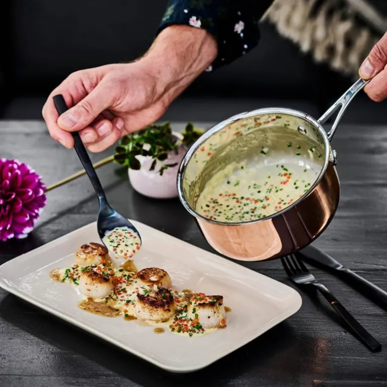 Sabor Copper har en 3-lags konstruksjon i kobber, aluminium og stål. De leder varme svært godt. Sabor Copper skal ikke vaskes i oppvaskmaskin. Vi anbefaler håndvask med myk børste og svamp.