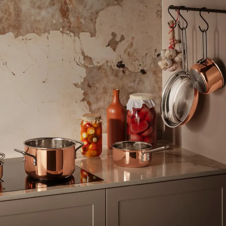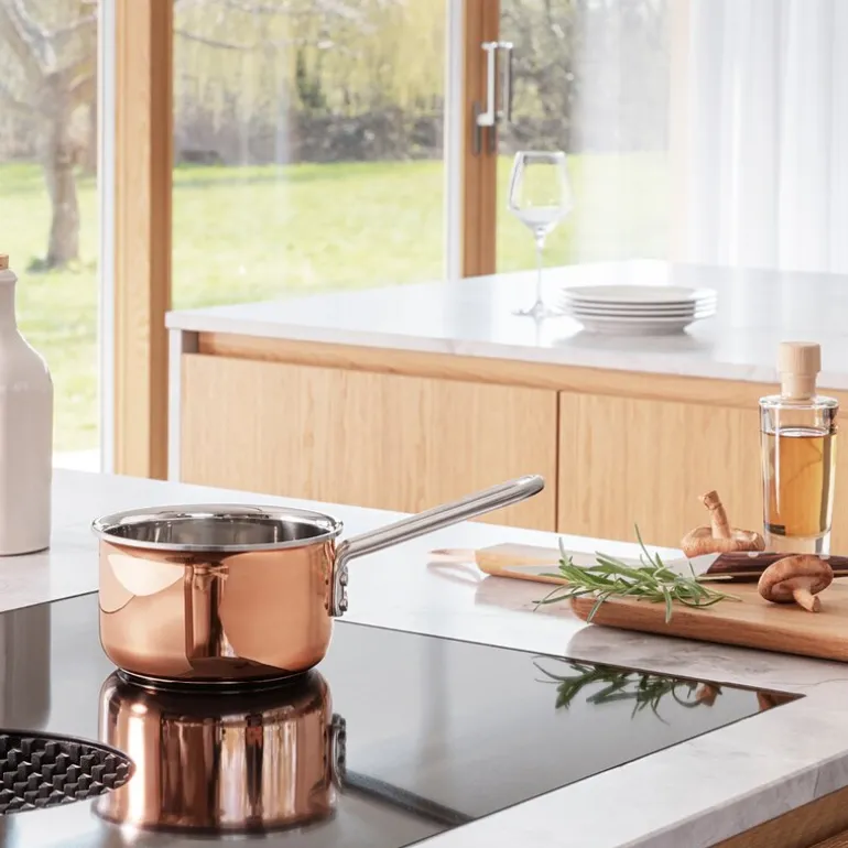 Med Copper kasserolle fra Eva Solo får du et kokekar som kombinerer tidløs eleganse med profesjonelle kokeegenskaper. Kobberet gir optimal varmefordeling, mens aluminiumskjernen og det rustfrie stålet på innsiden sikrer jevn temperatur og slitestyrke.