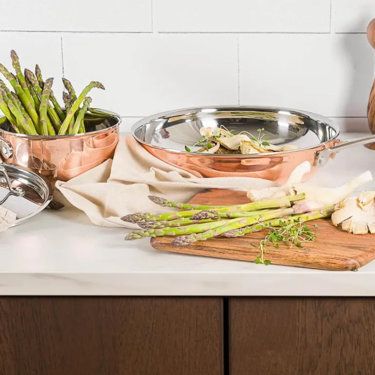 Kobberets egenskaper gir rask oppvarming og nøyaktig temperaturkontroll, mens stålkjernen sørger for robusthet og lang levetid. Over tid utvikler kobberet en naturlig patina som gir pannen en unik karakter, men for de som ønsker å opprettholde den blanke finishen, anbefales jevnlig bruk av kobberpuss. For å bevare kvaliteten bør pannen vaskes for hånd med en myk børste eller svamp.