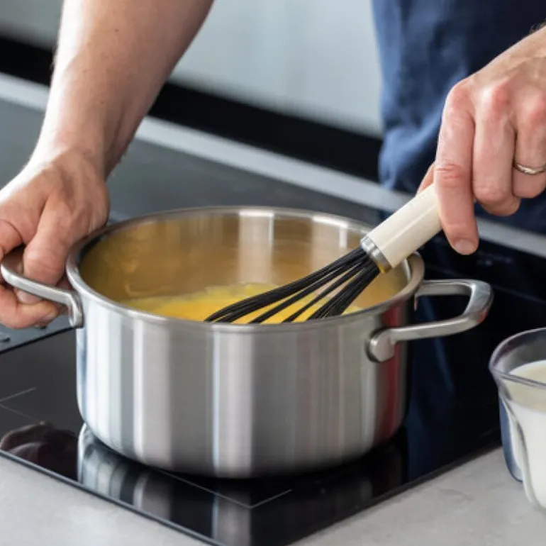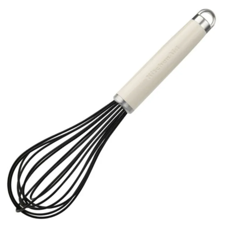 Core ballongvisp 27,5 cm i fargen almond cream fra kitchenAid med silikonbelagte tråder er ideell for pisking av marengs, egg og sauser uten klumper. De solide trådene i rustfritt stål er belagt med silikon, som tåler temperaturer opptil 232°C, og kan trygt brukes på non-stick-overflater. Det ergonomiske, velbalanserte håndtaket gir komfortabel bruk, og vispen tåler oppvaskmaskin for enkel rengjøring.
