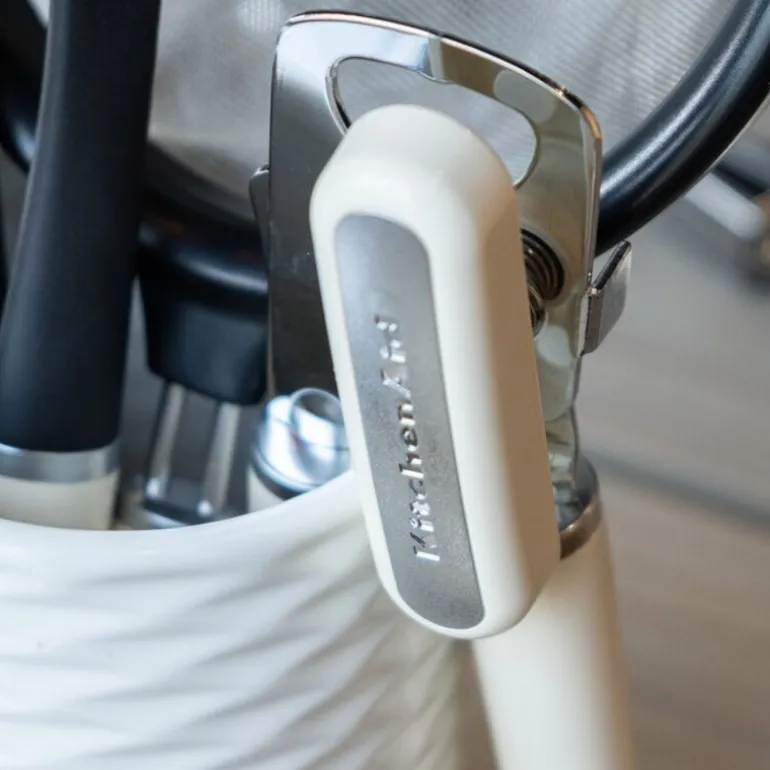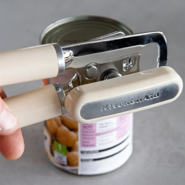 Core boksåpner 21 cm i fargen almond cream fra KtichenAid gjør åpning av bokser enkelt med en stor, lettdreid knott og et skarpt skjærehjul i rustfritt stål av høy kvalitet. Denne boksåpneren har også en innebygd flaskeåpner og ergonomiske håndtak som gir et komfortabelt og sikkert grep. Håndtaket har en blank finish og kromdetaljer. Kun håndvask anbefales for å bevare kvaliteten.