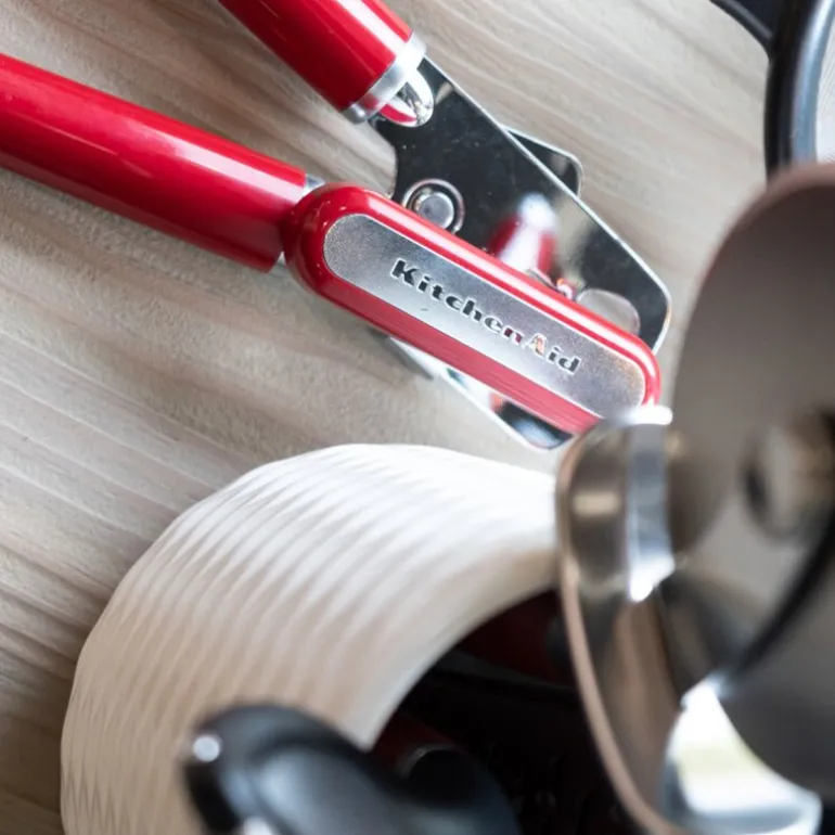 Core boksåpner 21 cm i fargen empire red fra KtichenAid gjør åpning av bokser enkelt med en stor, lettdreid knott og et skarpt skjærehjul i rustfritt stål av høy kvalitet. Denne boksåpneren har også en innebygd flaskeåpner og ergonomiske håndtak som gir et komfortabelt og sikkert grep. Håndtaket har en blank finish og kromdetaljer. Kun håndvask anbefales for å bevare kvaliteten.