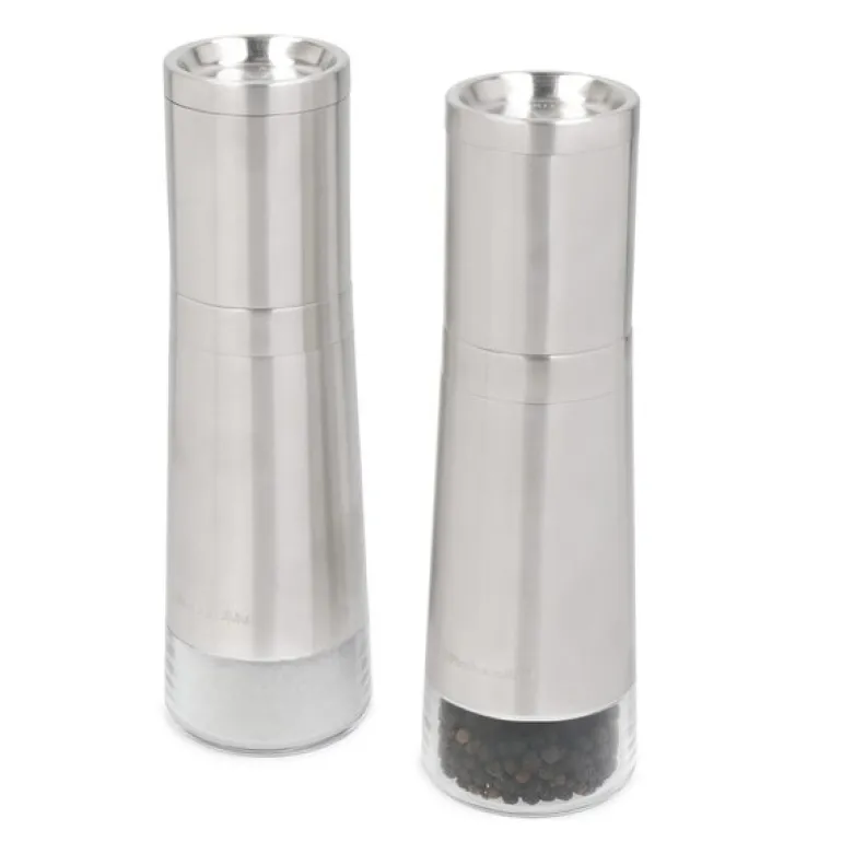 Core kvernsett 20 cm i rustfritt stål fra KitchenAid inkluderer en saltkvern og en pepperkvern, begge med justerbar keramisk mekanisme for fin eller grov maling. De avtakbare toppene gjør påfyll enkelt, og det klare vinduet viser når kvernene trenger påfyll. Kvernene er laget av holdbart, korrosjonsfritt materiale og anbefales håndvask for lengre levetid. Settet leveres med livstidsgaranti og ett års problemfri utskifting.