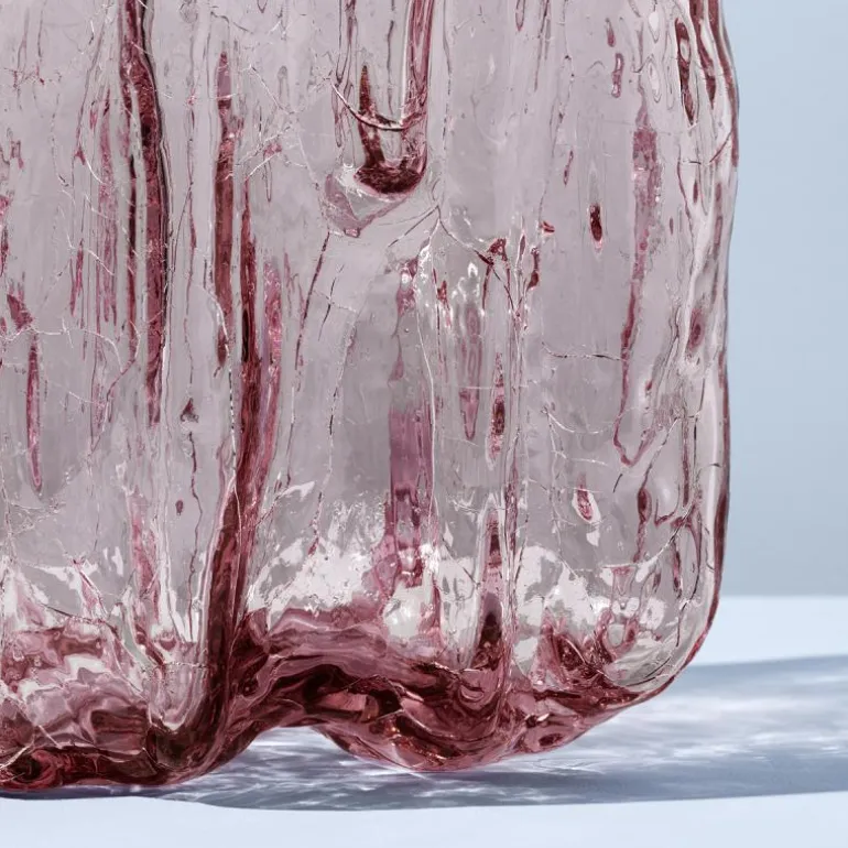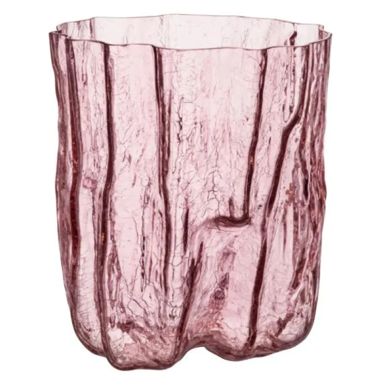 Crackle vase 28 cm rosa fra Kosta Boda er en hyllest til sprukket, vakkert bevart glass. Serien har et skulpturelt og utrykksfullt ytre, som skapes med en gammel håndverksteknikk der det varme glasset dyppes i iskaldt vann.