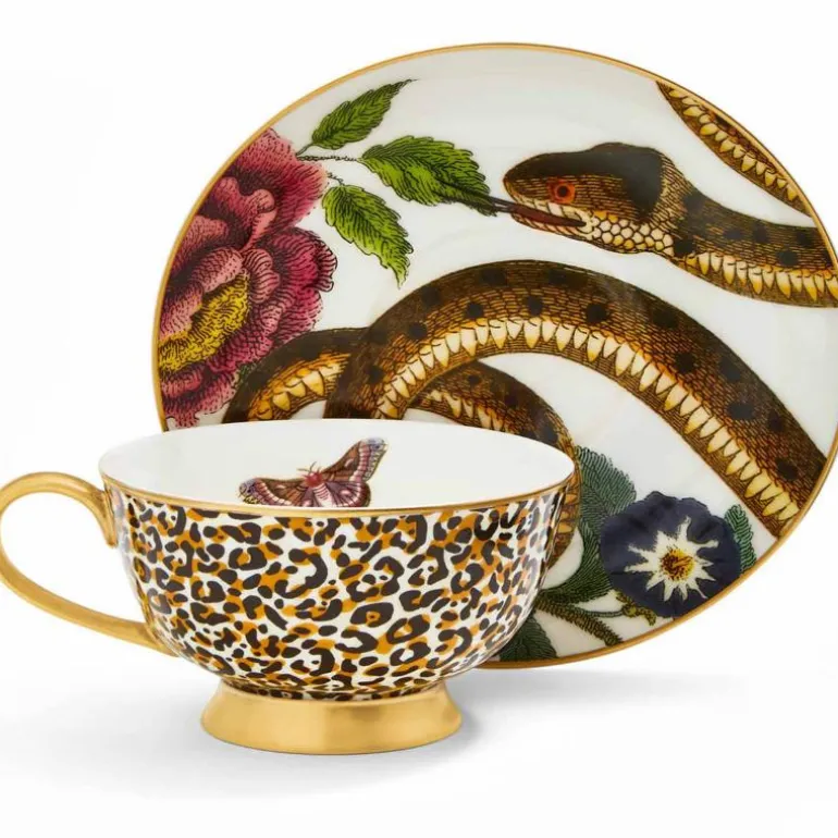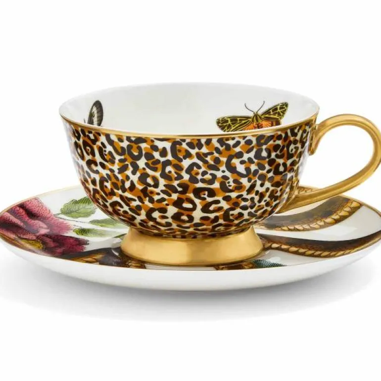 Denne fantastisk vakre tekoppen og asjett er en del av Spodes kolleksjon Creatures of Curiosity som har fantastiske mønstre inspirert av villmarken. Koppen og fatet har håndmalte detaljer som vil lyse opp hver gang den brukes. Håndtaket er malt med 22 karat gull og koppen med tilhørende fat er laget av eksklusivt benporselen med vakre mønstre som gjør den perfekt til finere anledninger eller som gave til noen du liker. Kombiner gjerne med andre produkter fra samme kolleksjon. Vi anbefaler håndvask for lengre holdbarhet.