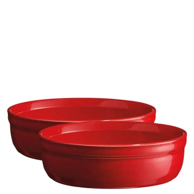 Disse stilfulle crème brûlée-formene fra Emile Henry, i rød og 13 cm diameter, gir deg en ideell overflate for å karamellisere sukkeret perfekt. Formene er grunne for jevn varmefordeling, noe som gjør dem like egnet til dessert som til kreative forretter som tomat og mozzarella. Takket være deres flate design kan de stables praktisk i kjøleskapet, og med Emile Henrys franske håndverk får du 10 års garanti – en trygghet som garanterer mange vellykkede serveringer.