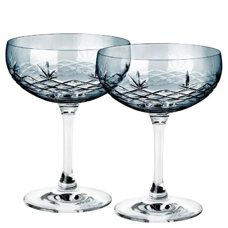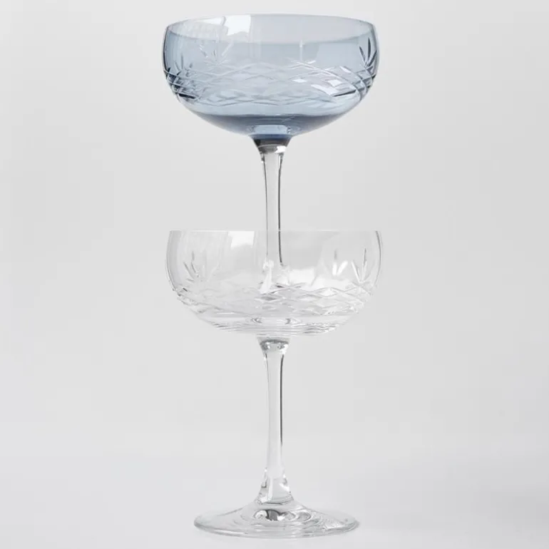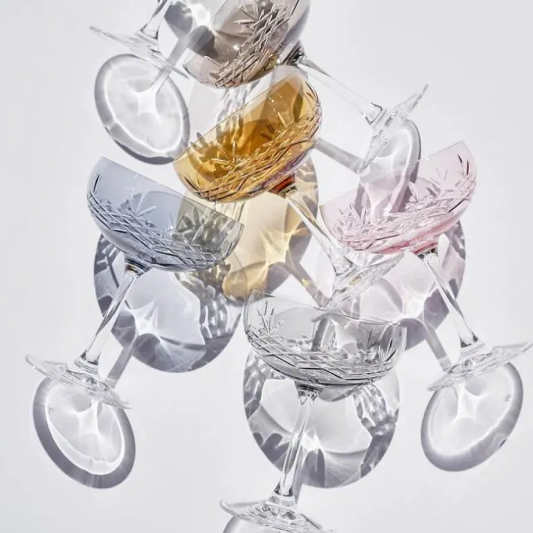 De vakreste Crispy Gatsby champagneskåler i krystallglass, som egner seg til alt fra champagne til en Espresso Martini eller som et festlig innslag på frokostbordet.