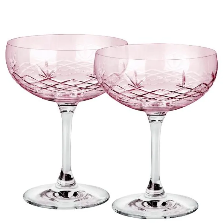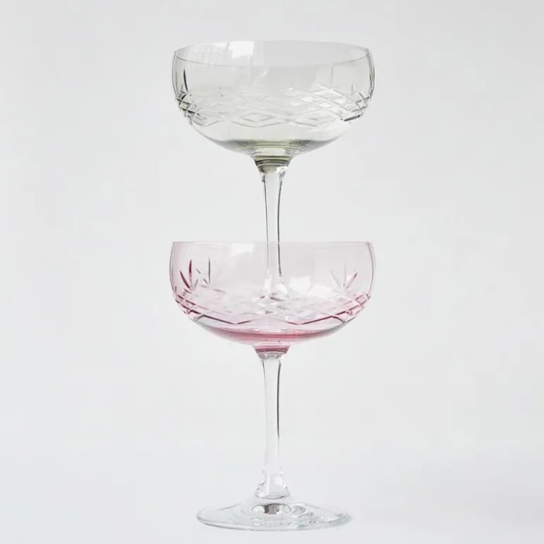 De vakreste Crispy Gatsby champagneskåler i krystallglass, som egner seg til alt fra champagne til en Espresso Martini eller som et festlig innslag på frokostbordet.