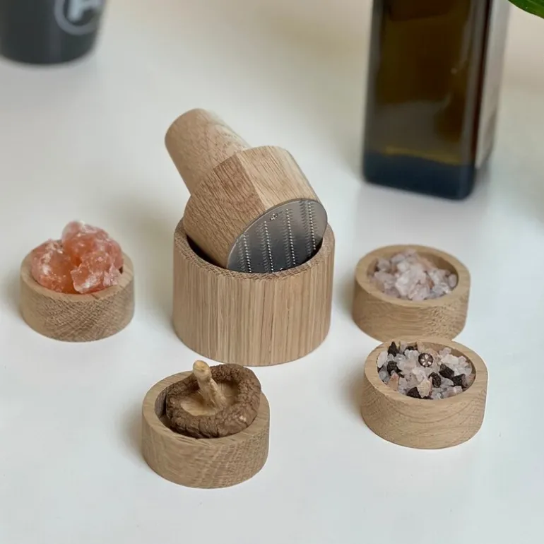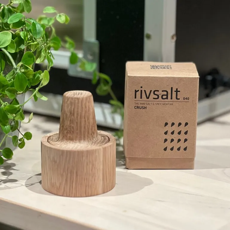 Crush 040 krydderkvern mini fra Rivsalt er en liten, men kraftig kvern som gir deg full kontroll over maling av salt og tørkede krydder. Designet med en elegant kropp i eik og utstyrt med skarpe rustfrie stålblad, gjør Crush prosessen både enkel og effektiv. Bare legg krydderet i trebollen, vri på støderen, og hell det ferdigmalte krydderet over retten din. Det følger også med en trebørste for å sikre enkel rengjøring og lang levetid på produktet.
