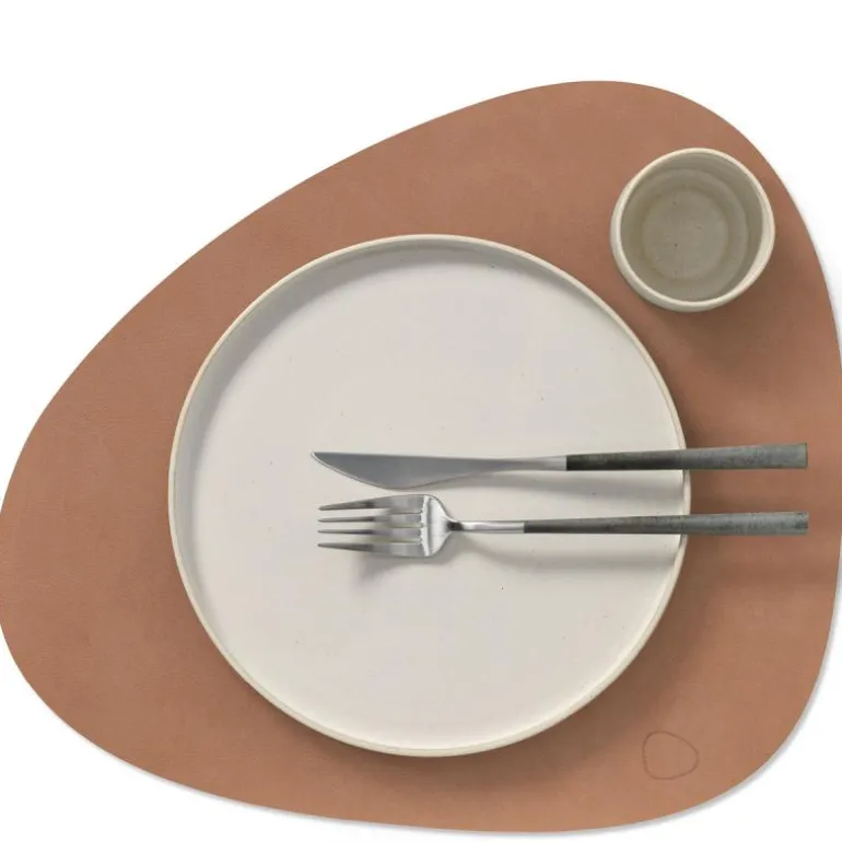 Curve Nupo spisebrikke L 37×44 cm old rose. TABLE MAT DOUBLE CURVE fra LIND DNA er en funksjonell og stilfull spisebrikke, designet for maksimal fleksibilitet. Denne tosidige spisebrikken er laget av OEKO-TEX®-sertifisert resirkulert skinn, og har ulike farger og overflater på hver side, noe som gjør det enkelt å endre utseendet på bordet ved å snu den.