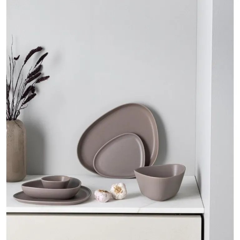 Curve Stoneware dyp tallerken 22×19 cm varm grå. Den karakteristiske buede formen på vår håndlagde Curve Stoneware dyp tallerken gir borddekkingen din en ekstra dimensjon, og lar deg skape et dynamisk og harmonisk uttrykk ved å kombinere den med LIND DNA spisebrikker og matchende steinservise. Denne dype tallerkenen er ideell for servering av frokost, snacks, desserter og supper, og tilfører eleganse til både hverdagslige måltider og festlige anledninger.