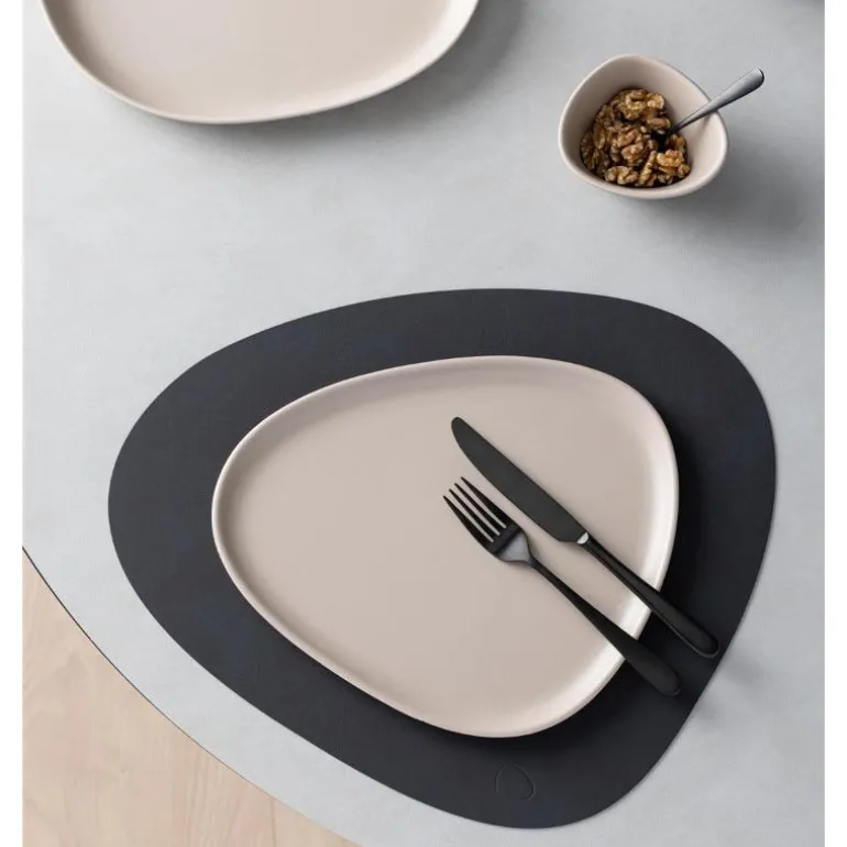 Curve Stoneware middagstallerken 30×26 cm sand. Den karakteristiske buede formen på den håndlagde Curve Stoneware middagstallerken gir deg muligheten til å leke enda mer med borddekkingen din ved å tilføye en ny dimensjon av kurver. Ved å kombinere dine LIND DNA spisebrikker med vårt matchende service i stein, skaper du den perfekte harmonien på bordet ditt – i hverdagen så vel som til festlige anledninger.