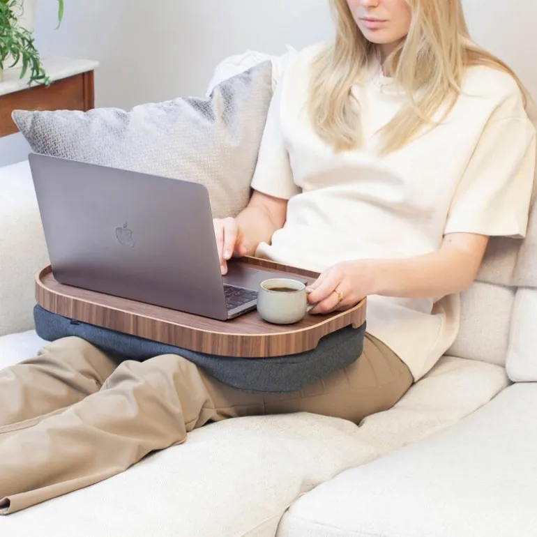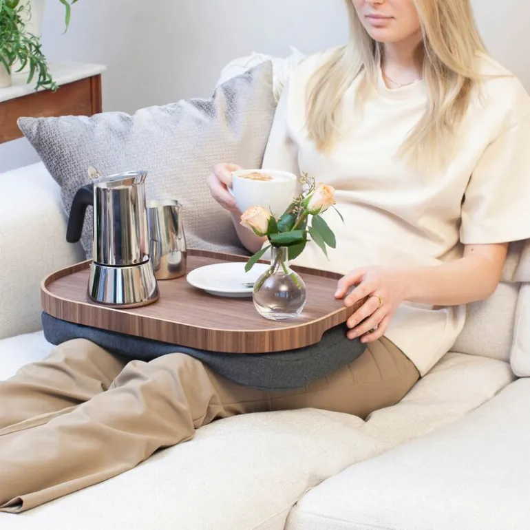 CurveLine anti-slip knebrett fra Bosign i valnøtt og grå gir en stilfull og praktisk løsning for både mat, arbeid og avslapning. Med en romslig størrelse på 47×34 cm passer brettet perfekt til frokost i sengen, middag i sofaen eller som et stabilt underlag for bærbar PC.