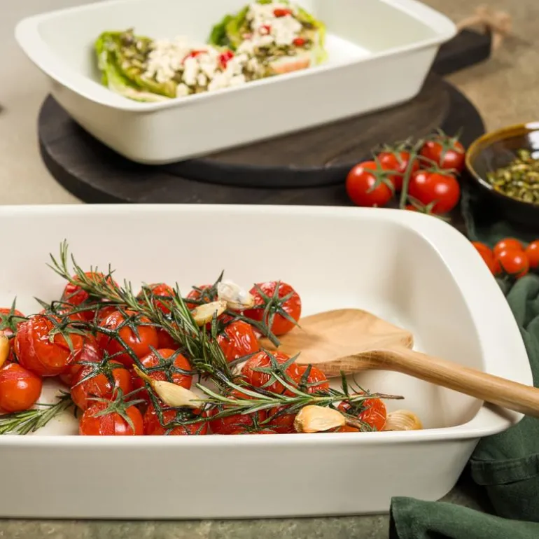 Disse formene er laget av høykvalitets keramikk, med en matt hvit glasur som gir et stilrent utseende. De tåler temperaturer fra -20°C til 300°C, noe som gjør dem egnet både for frysing og baking. I tillegg er formene konstruert for å tåle varmesjokk på opptil 200°C, noe som gir deg trygghet ved rask temperaturveksling fra fryser til ovn.