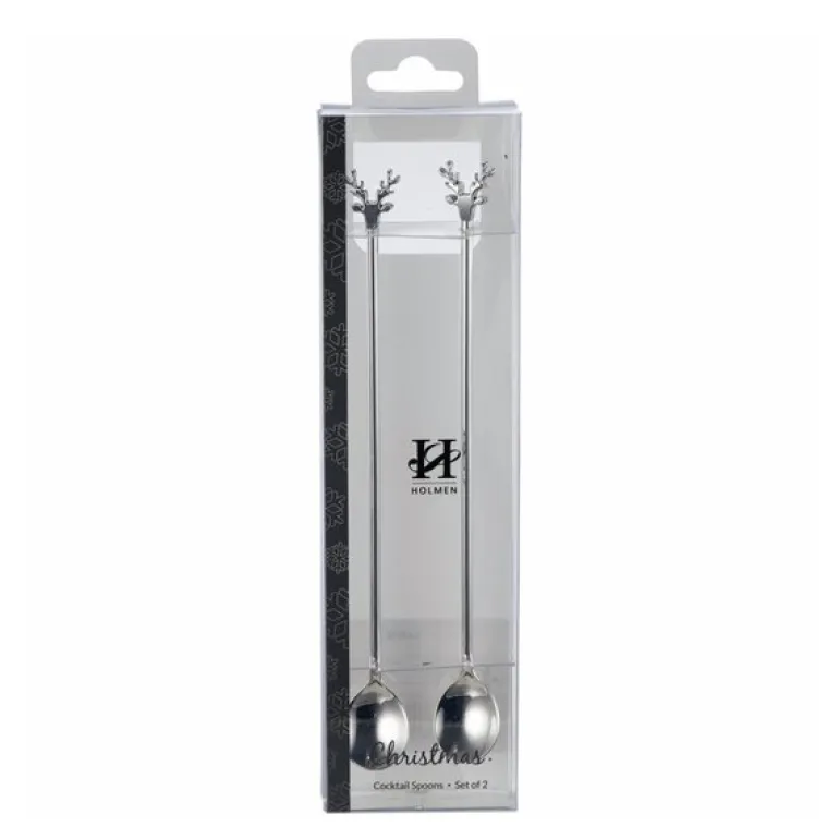 Sett et morsomt og elegant preg på serveringen med Dante skjeer fra Holmen. Denne 2-pakningen med røreskjeer på 19 cm har dekorative reinsdyr på toppen, noe som gir dem et særpreg som skiller seg ut.