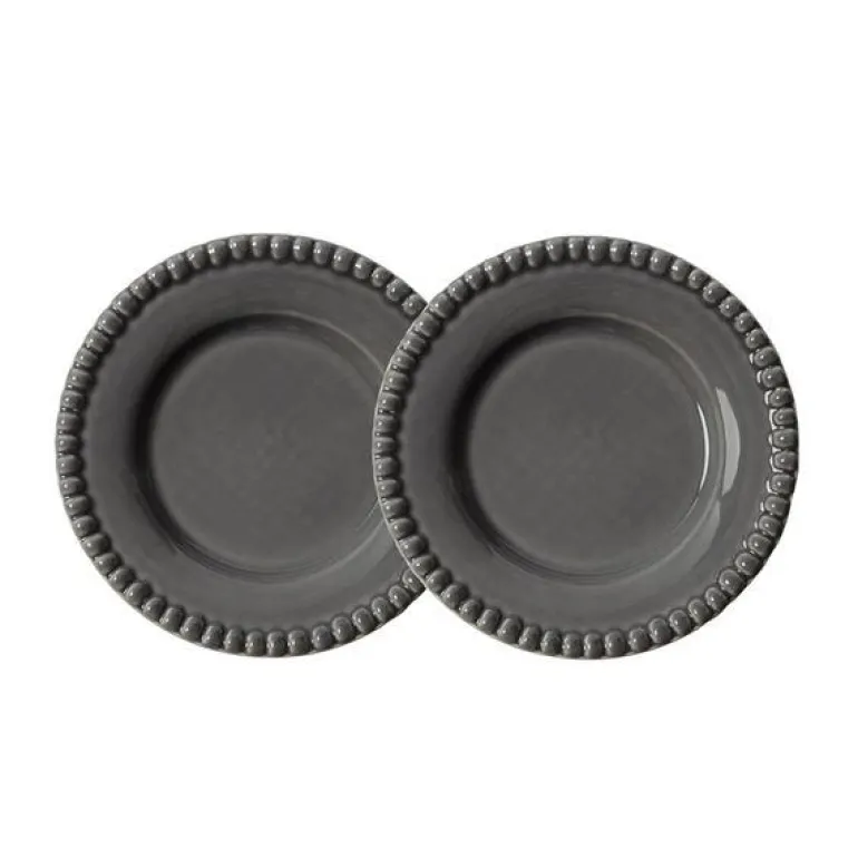 DARIA asjett 18 cm clean grey, i sett med to, er en liten tallerken som passer perfekt til frokost, dessert eller småserveringer. Håndlaget i Portugal av robust stengods med et subtilt relieffmønster, gir den et uttrykk som er både diskret og elegant.