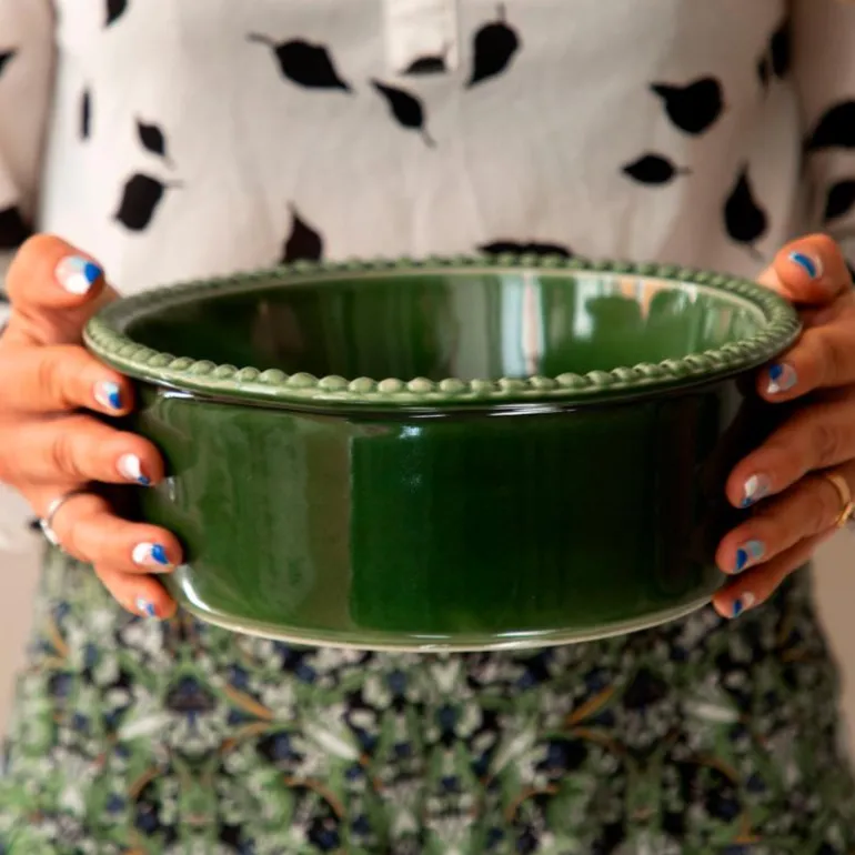 DARIA skål 23 cm moss. Håndlaget stor skål i relieffmønstret stengods. PotteryJo er laget med omhu i høykvalitets steintøy og keramikk – skapt, brent og håndlaget i Portugal, designet i Sverige. Den elegante og slitesterke DARIA-kolleksjonen er inspirert av plantenes livssyklus, spesielt spiringsprosessen og deres transformasjon. Denne kolleksjonen fremkaller en følelse av trygghet og håp om fornyelse, og representerer en organisk utforskning som har resultert i en kolleksjon av tidløse og elskede familiemedlemmer.