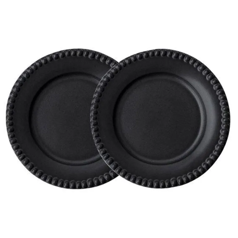 DARIA tallerken 22 cm ink black, 2-pk, er håndlaget i Portugal og har et elegant relieffmønster i stengods. Den dype sorte tonen gir borddekkingen et moderne og sofistikert preg – perfekt for frokost, forretter eller dessert.
