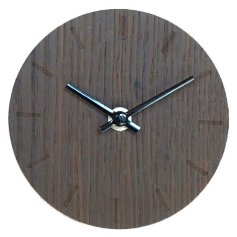 Hemverks Dark Oak bordklokke er et stilsikkert valg for deg som ønsker en liten, praktisk klokke som tilfører karakter til rommet. Klokken er laget av mørk eik, med unike årringer som gjør hver enkelt klokke spesiell. Den måler 12 cm og er derfor lett å plassere på nattbordet, bokhyllen eller kjøkkenet. Med svarte visere får klokken et ton-i-tone uttrykk, men du kan også velge visere i andre farger for å tilpasse uttrykket etter egen smak. Klokken leveres med en praktisk eikeholder som gjør at den står stabilt og elegant.