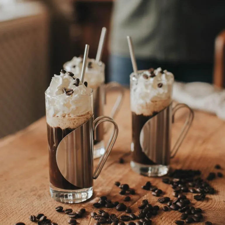 Darry Irish Coffee-settet består av veldesignede irske kaffeglass med tilhørende skjeer og underlegg, slik at du kan servere gjestene denne deilige drikken med stil.