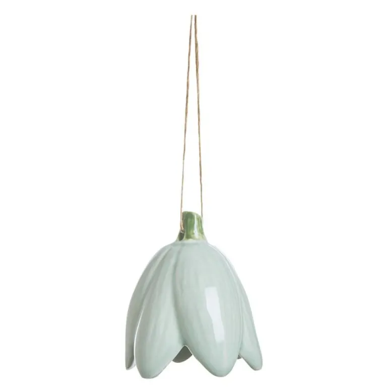 Den delikate Dehlia oppheng i støvet grønn fra Lene Bjerre er en keramisk skjønnhet som tilfører hjemmet ditt en rolig og harmonisk vårstemning. Dette blomsterformede opphenget, med mål på L5,7 x B5,7 x H6,4 cm, er malt i en myk grønn farge med en topp som minner om en frisk spire.
