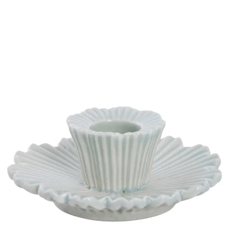 Den elegante Dehmira lysestake fra Lene Bjerre er en keramisk skjønnhet som bringer både stil og funksjonalitet til hjemmet ditt. Med sitt blomsterformede design og fine rillemønster, er denne lysestaken et raffinement av tidløs design. Støvet grønn farge gir et subtilt og rolig uttrykk, som passer perfekt til både moderne og klassiske interiører.