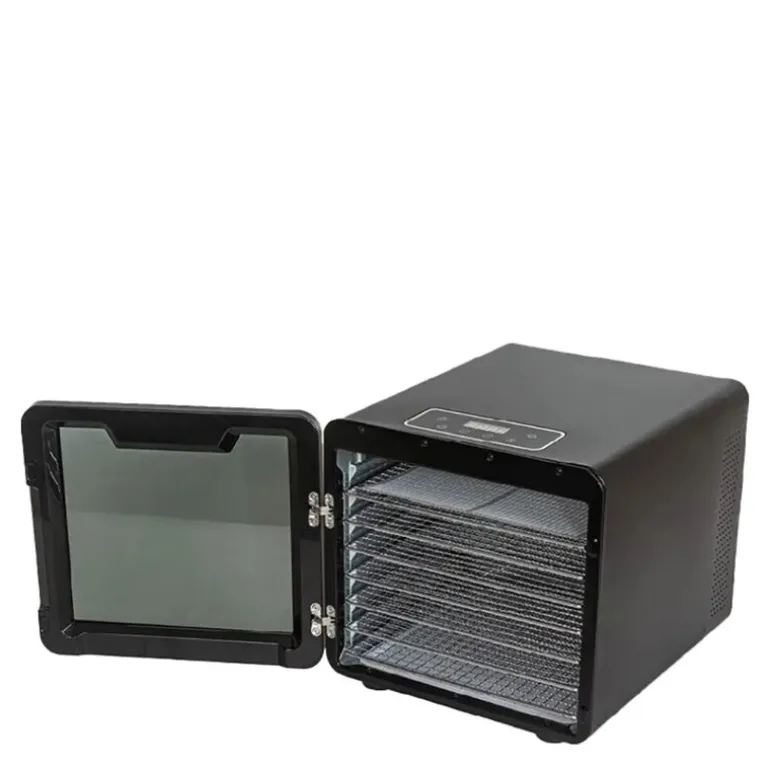 Med 8 hyller i rustfritt stål på 28,5 x 30,5 cm, gir dehydratoren deg et generøst tørkeområde på 0,7 m². Du kan enkelt tørke alt fra frukt og grønnsaker til kjøtt, fisk, urter og nøtter.