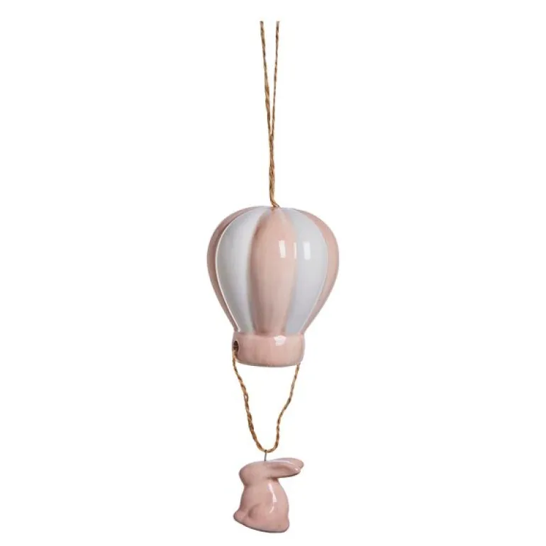 Deifilia oppheng i keramikk fra Lene Bjerre er en sjarmerende og unik dekorasjon som tilfører en følelse av lek og eleganse til hjemmet ditt. Luftballongen, malt i myke nyanser av lys rosa og hvitt, henger fra en jutestreng som gir den et naturlig og eventyrlig utseende. Under ballongen henger en liten keramisk kanin, som gir opphenget en søt og livlig dimensjon.