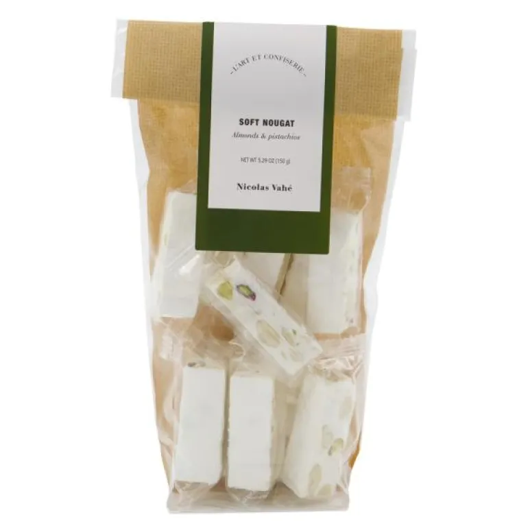 Deli soft nougat mandel & pistasje, fra Nicolas Vahe. Godbiter i små størrelse til enhver anledning. Nyt den velkjente smaken av pistasjnøtter og sprøheten av blancherte mandler i denne posen med italiensk myk nougat fra Nicolas Vahé. Sødmen av nougat og de nøtteaktige smaksnyansene kombineres i denne velbalanserte delikatessen. Gi den til en spesiell person, server som snacks etter middagen, eller del den med en venn over en kopp kaffe. Selvfølgelig kan du også beholde hver godbit for deg selv. Det er ikke noe galt med å skjemme deg selv bort av og til.