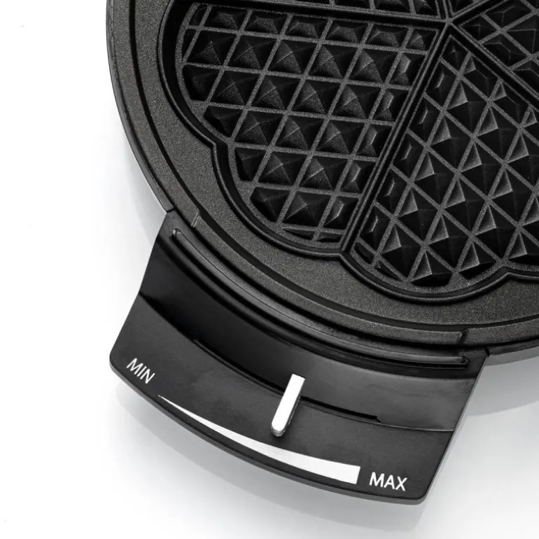 Med justerbar temperatur og en indikatorlampe kan du enkelt kontrollere stekingen for å få vaflene nøyaktig slik du liker dem – sprø, gylne eller mykere. Non-stick-belegget sikrer at vaflene slipper lett, samtidig som det gjør rengjøringen enkel og problemfri.
