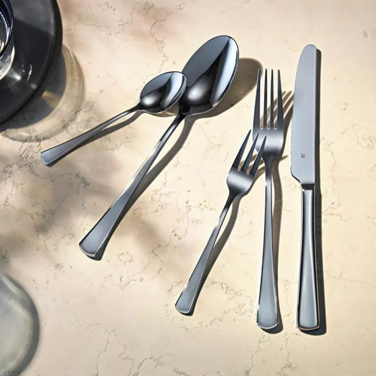 Skap den perfekte spiseopplevelsen med dette flotte Denver-bestikket fra WMF, der polerte overflater vakkert kombineres med brede ender og koniske linjer. Markant, men tidløst bestikk i Cromargan® rustfritt stål 18/10 i høy kvalitet for en ekstraordinær holdbarhet og et vakkert design som aldri slår feil. Bestikkets ergonomiske design er basert på mange års erfaring og ekspertise, noe som WMF er berømt for, og ligger derfor perfekt i hånden. Knivene er smidd av ett enkelt stykke spesialbladstål og herdet som en helhet. Den spesialdesignede taggete eggen er med på å sikre en optimal og langtidsholdbar skarphet.
