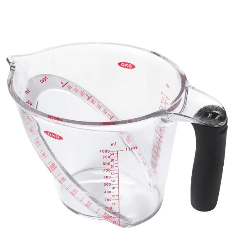 og viser både ml og cup. Desilitermålet har et komfortabelt non-slip