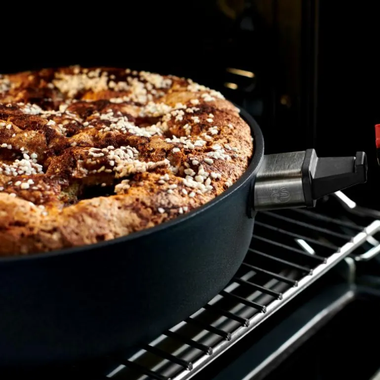Wok i støpt aluminium, Woll. Utstyrt med et slitesterkt og PFOA-fritt 5-lags belegg som bla. består av diamant-partikler Avtagbart håndtak. Kan brukes på alle varmekilder, også induksjon. Pannen tåler ovn. Håndtak kan ikke tas i ovn.
