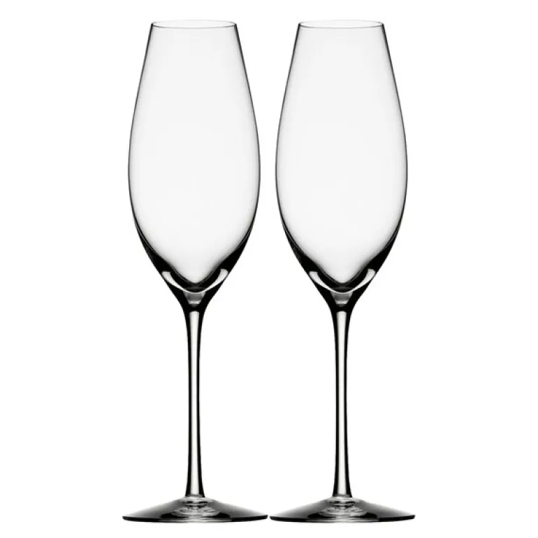 Eske med to stykk Difference Sparkling champagneglass fra Orrefors er designet med fokus på sanselig nytelse. Her er det smaksopplevelsen som står i sentrum, like mye som glassets estetikk og følelse i hånden. Erika Lagerbielke samarbeidet med vinkjenner Bengt-Göran Kronstam for å finne frem til glassformer som fremhever drikken – uansett druesort.