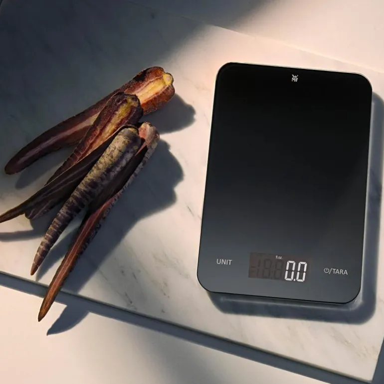 I tillegg til god timing, så er nøyaktige mål og rett mengde ingredienser avgjørende for en vellykket matlaging og baking. De stilfulle, superflate WMF kjøkkenvektene med elegant veieoverflate og tydelig digitalt display veier nøyaktig våte og tørre ingredienser i alle vektenheter og opptil fem kilo. Vektene har også en batterinivåindikator og slås av automatisk når de ikke er i bruk. Med den praktiske tarafunksjonen kan du veie alle ingrediensene hver for seg eller samlet i en skål. WMFs presise kjøkkenvekter er veldig enkle å bruke, og det elegante designet taler for seg selv!