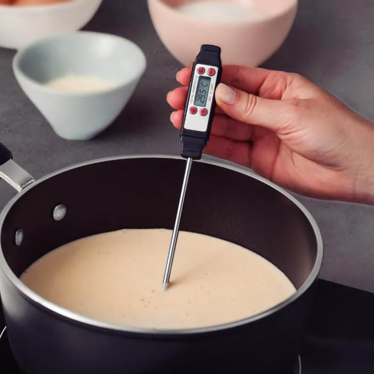 Kan brukes til steking, grilling og baking eller ta temperaturen på saus.