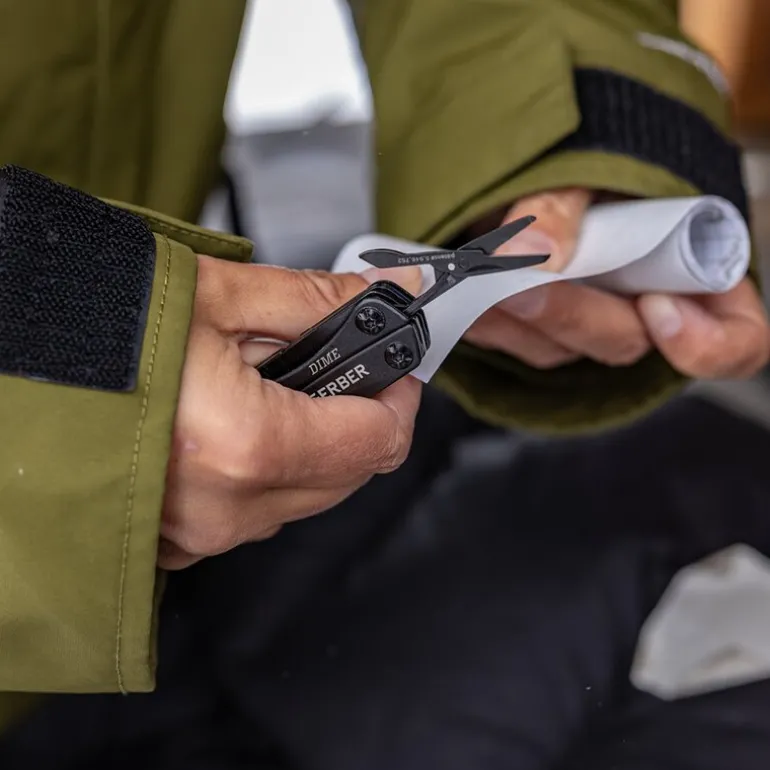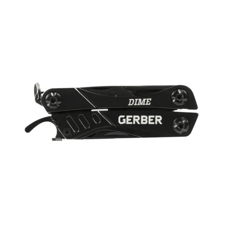 Dime multiverktøy svart fra Gerber. Ideen til Dime er enkel: Vær forberedt. Dette lille multiverktøyet har en imponerende utstyrsliste som sikrer at du er klar for alt. Det fjærbelastede verktøyet åpnes enkelt slik at du har tilgang til alle 12 funksjoner, inkludert tang, kniv, saks, flaskeåpner og pinsett. Like nyttig hjemme som på campingtur.