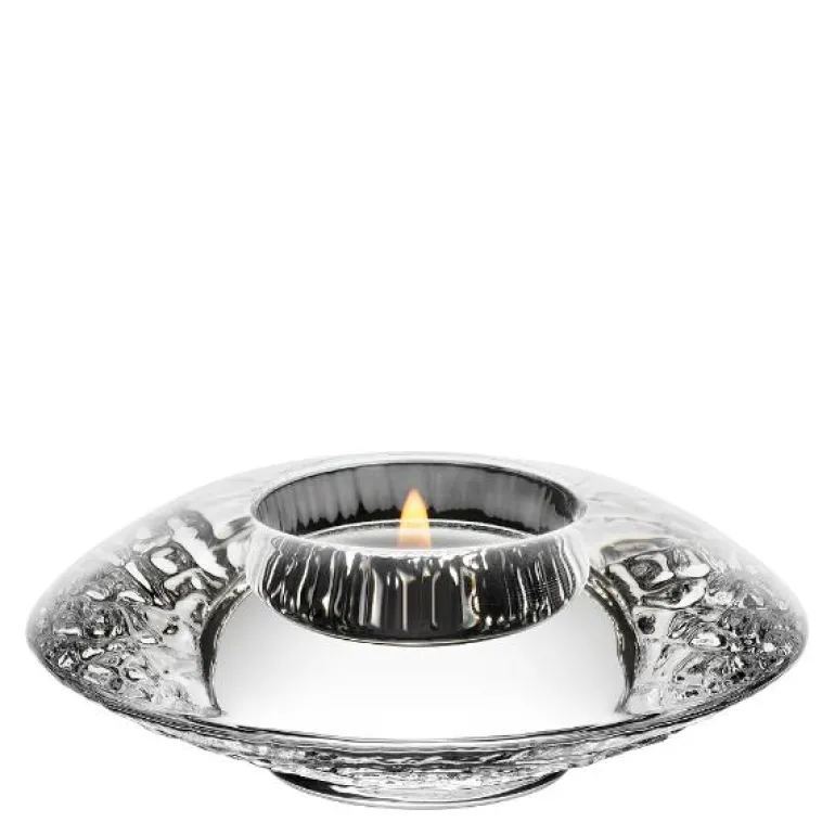 Discus votive lysestake 4,3cm fra Orrefors. Lyslykten Discus i klart glass fra Orrefors er formgitt av Lars Hellsten. Den optiske effekten på lyslyktens underside skaper et vakkert lys. Discus i klart glass finnes i to størrelser.