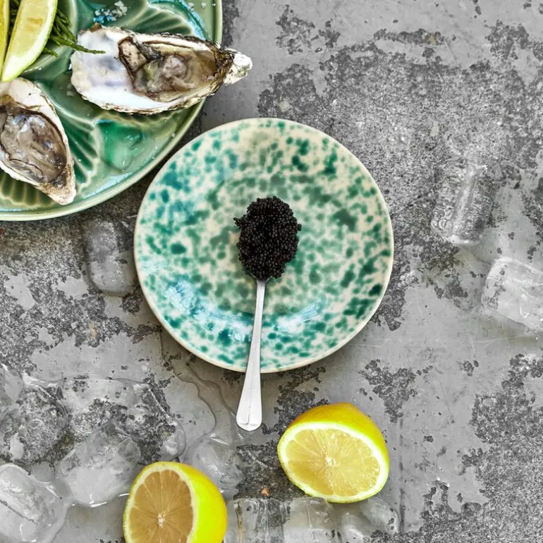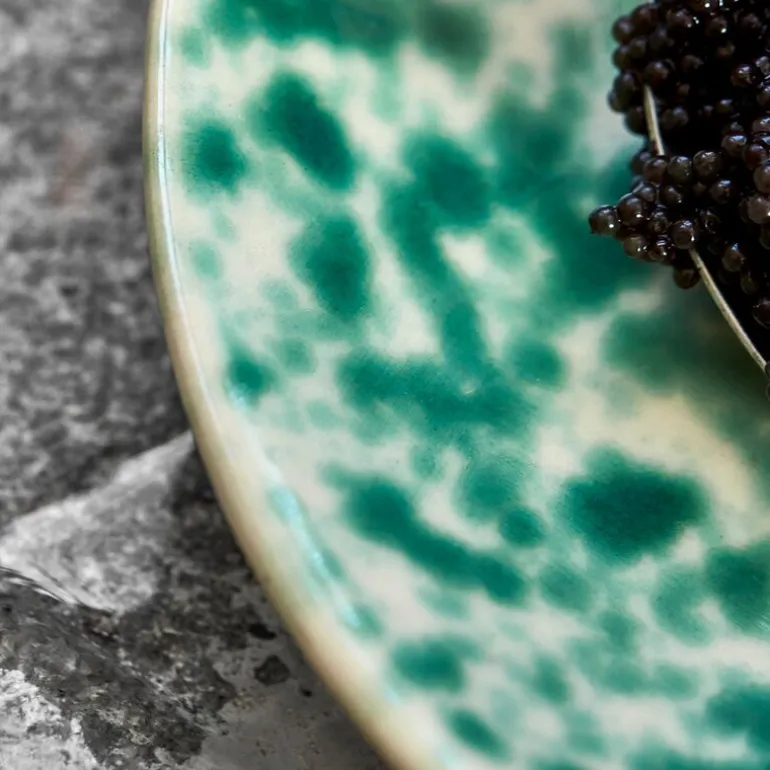 Gi bordet et friskt og moderne uttrykk med Diva kaketallerken 16 cm fra House Doctor. Tallerkenen er laget i slitesterkt stentøy og dekorert med et håndmalt splash-mønster i grønne nyanser, noe som gir den et uttrykksfullt og lekent preg.
