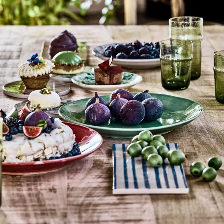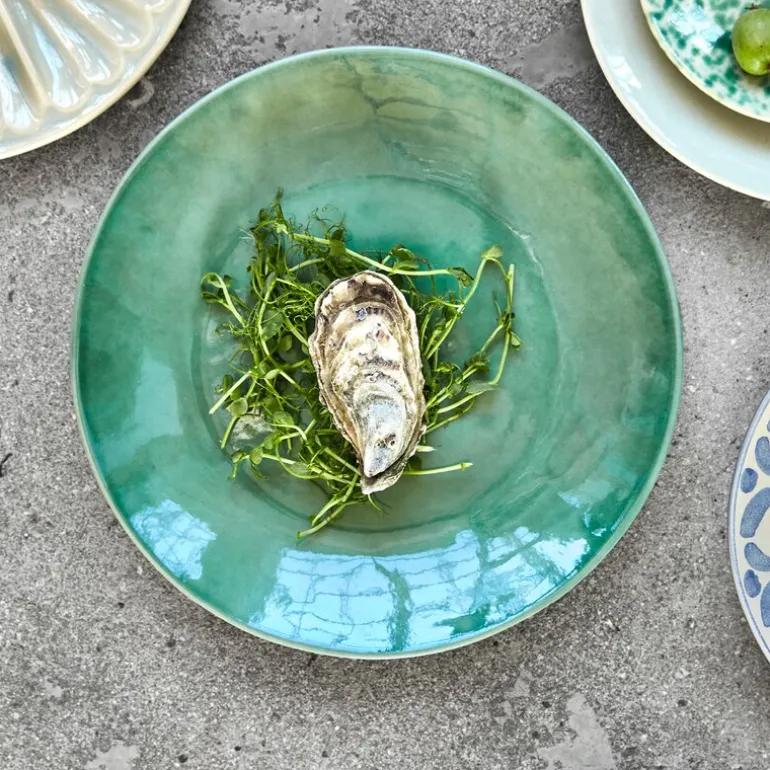 Diva middagstallerken 28 cm fra House Doctor er en elegant tallerken laget av stentøy og dekorert med en livlig grønn nyanse som tilfører friskhet til bordet. Den håndlagde finishen gjør hver tallerken unik, og gir et subtilt kunstnerisk preg.