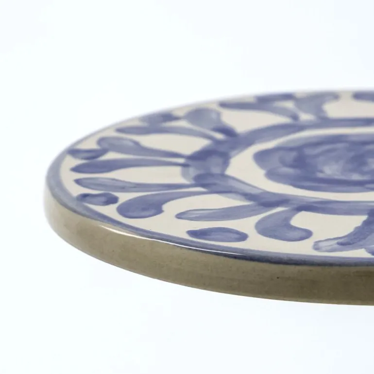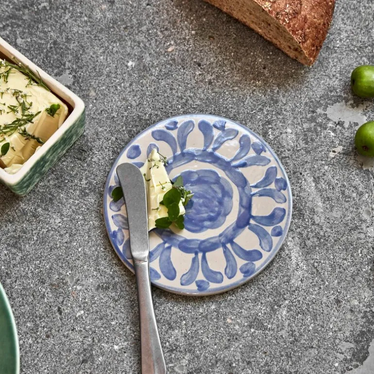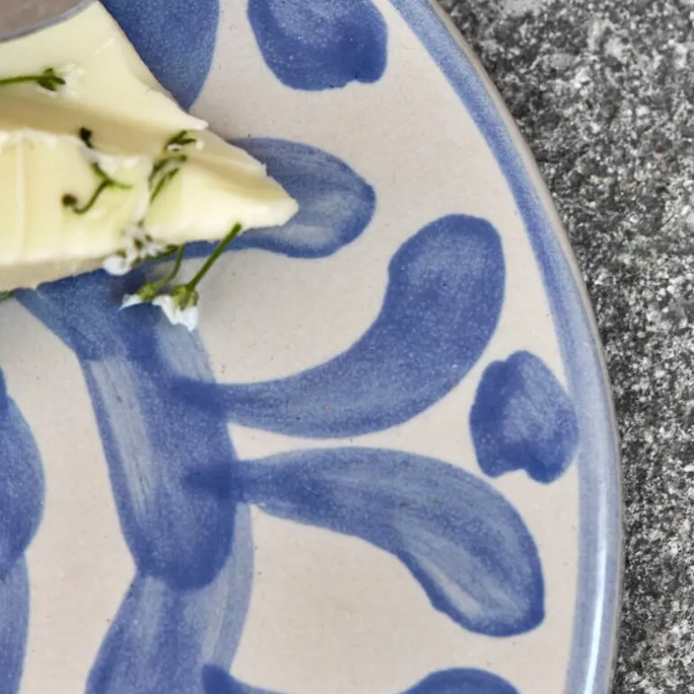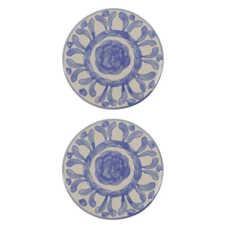Diva serveringsbrett 15 cm fra House Doctor kommer i et sett med to keramiske brett dekorert med håndmalte blå mønstre. Det runde formatet og det detaljerte designet gjør dem ideelle til å servere tapas, ost eller småretter med stil.