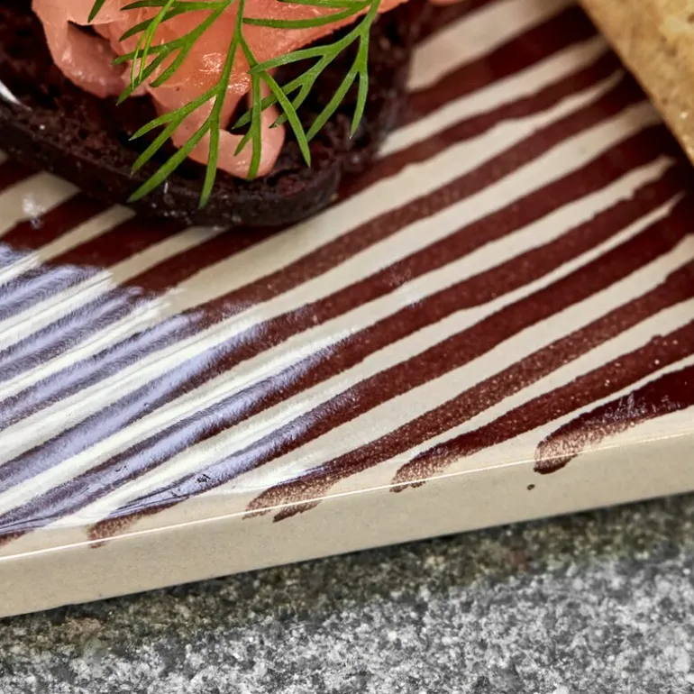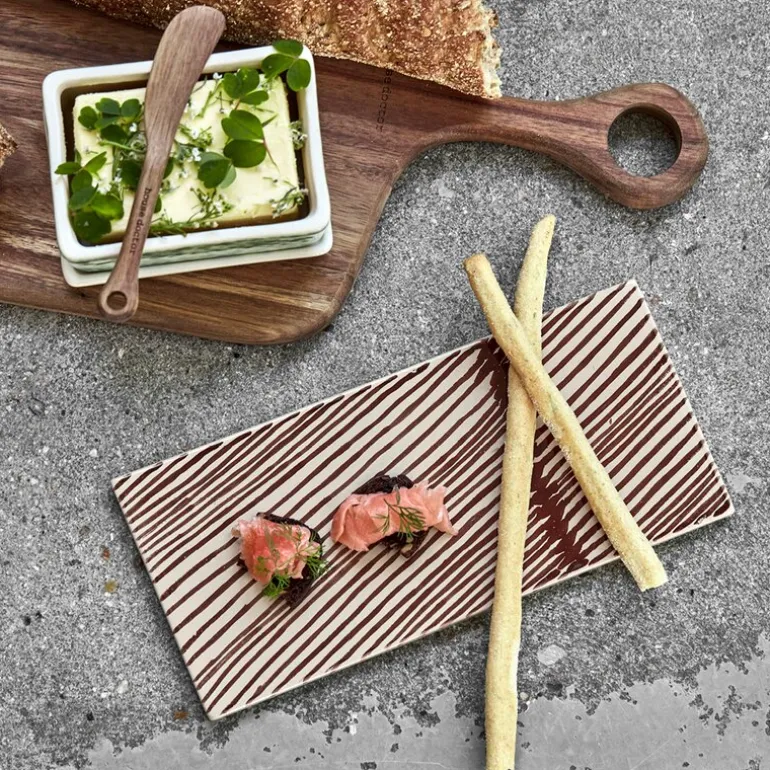 Diva serveringsbrett 26×12 cm fra House Doctor er designet for å gjøre serveringen både estetisk og praktisk. Settet består av to keramiske brett med håndmalte brune striper, som gir et varmt og rustikt uttrykk.