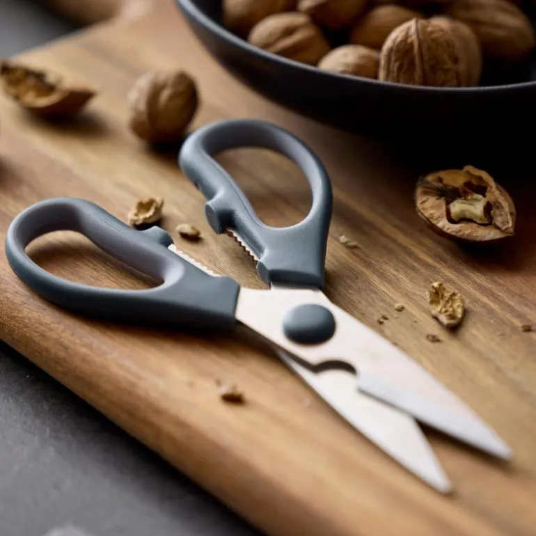 Diversity kjøkkensaks 19,5×8,5 cm indigo, fra Tareq Taylor. Kompakt kjøkkensaks med blad i rustfritt stål og håndtak i hardplast. Saksen har en nøtteknekker i håndtaket og kan enkelt deles i to deler, noe som gjør den mye enklere å rengjøre og holde hygienisk.