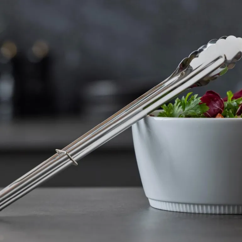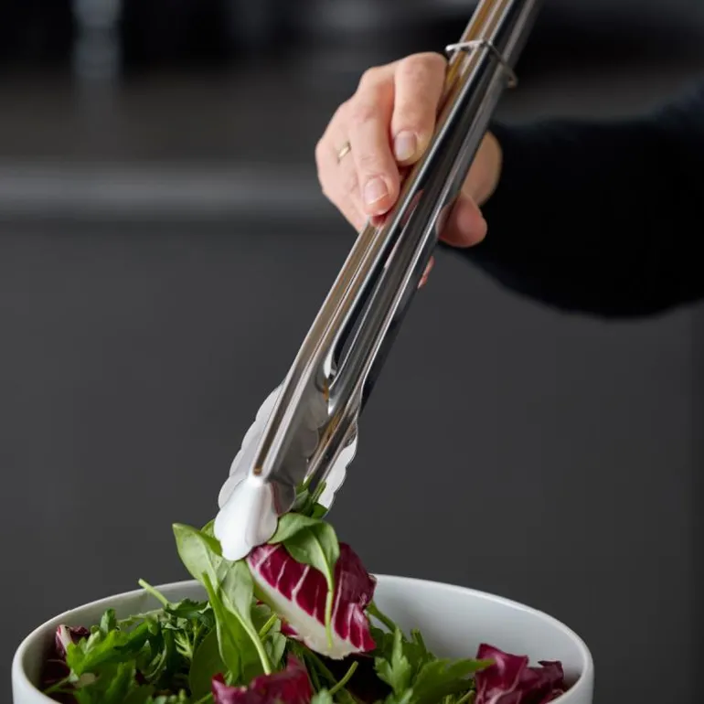 Diversity universaltang/kjøkkentang 35,5×3,5 cm stål, fra Tareq Taylor. Den lange universaltangen i rustfritt stål på 35,5 cm er allsidig. Bruk den for eksempel til å løfte pasta eller som salattang. Tangen har en fjær øverst, og armene kan låses sammen slik at den tar mindre plass i skuffen.