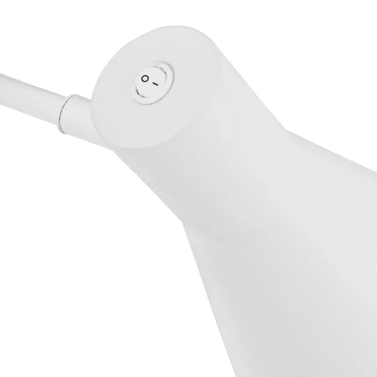 Av/på-bryteren er smart plassert på lampehodet, noe som gjør det enkelt å slå lampen av og på uten anstrengelse. Den hvite finishen gir lampen et friskt og rent uttrykk som harmonerer med ulike interiørstiler, fra minimalistiske til mer tradisjonelle.