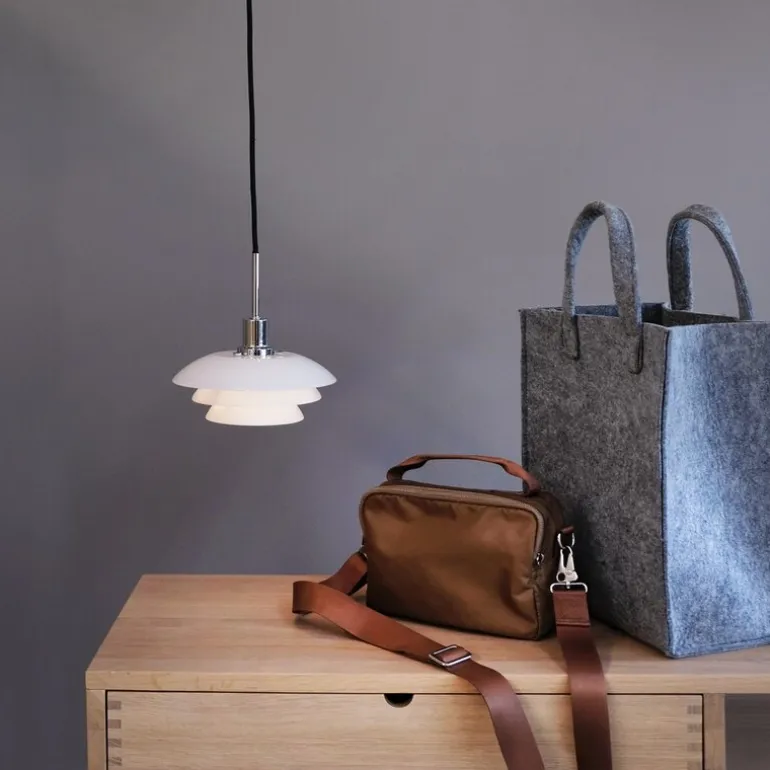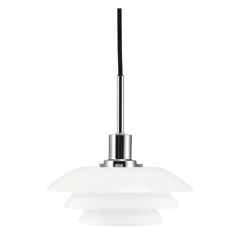 DL20 pendel 9 cm i opal/krom fra Dyberg Larsen er en sofistikert lampe som gir et moderne og elegant preg til hjemmet ditt. Den opale skjermen i tre lag skaper en myk og behagelig lysspredning, mens kromopphenget tilfører et luksuriøst element som passer perfekt over spisebordet, på kjøkkenet eller i et hjørne som dekorativ belysning.