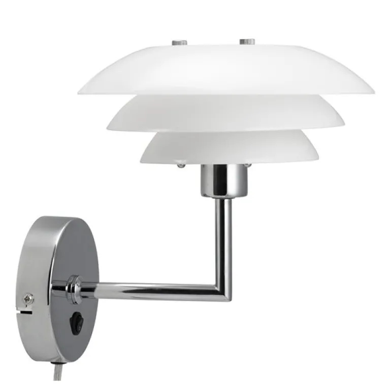 Kombinasjonen av opalglass og krom/metallfot gir lampen et moderne, men samtidig tidløst uttrykk som gjør den til en allsidig løsning for mange ulike rom og stiler. DL20-vegglampen er en del av den populære DL-serien fra Dyberg Larsen, som er kjent for sin balanse mellom funksjon og estetikk, og for sitt design som aldri går av moten.