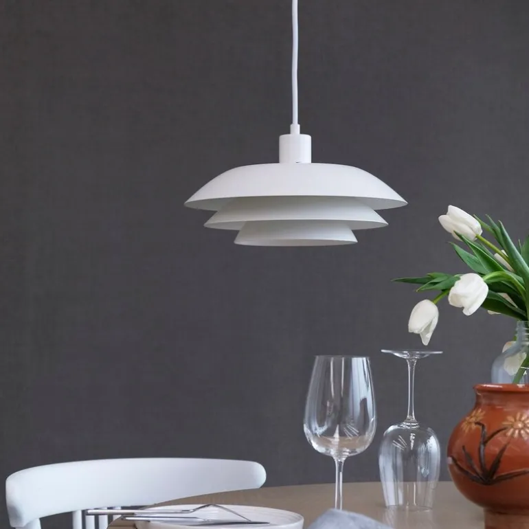 DL31 pendel er spesielt designet for å gi et behagelig og blendefritt lys, noe som gjør den ideell for plassering over spisebordet, kjøkkenøya eller som allmennbelysning i større rom. Opalglassmodellen sprer lyset mykt og jevnt, og tilfører rommet en varm og innbydende atmosfære, mens metallvarianten fokuserer lyset direkte nedover, noe som gir en mer intim og romdelt følelse.