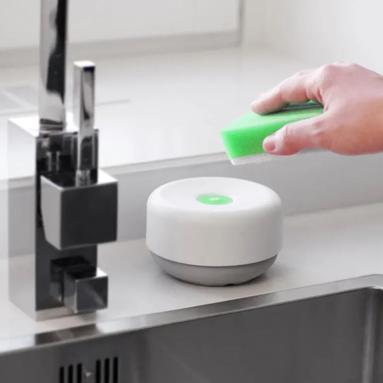 Denne smarte pumpen bidrar til å redusere forbruket av oppvaskmiddel, og du kan tilsette vann i beholderen for å få optimal flyt og utnyttelse. Den står stødig på benken takket være en sklisikker base i silikon, som sikrer stabilitet selv under daglig bruk.